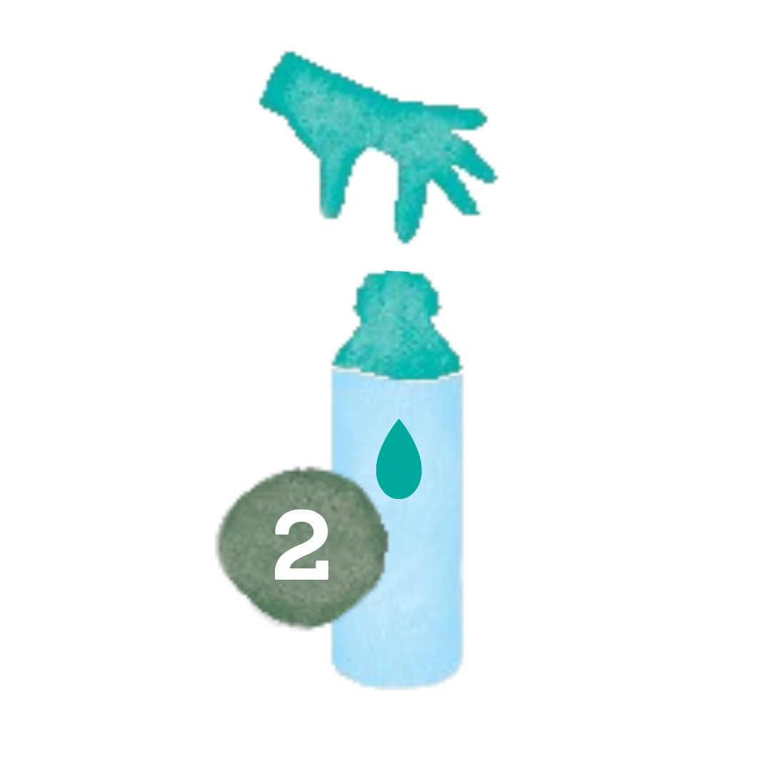 Los de parel op in water, spray en veeg schoon. Werkt op bijna alles: eetbakken, speelgoed, benches, manden, zetels en vloeren. De probiotica blijven daarna nog dagenlang actief.